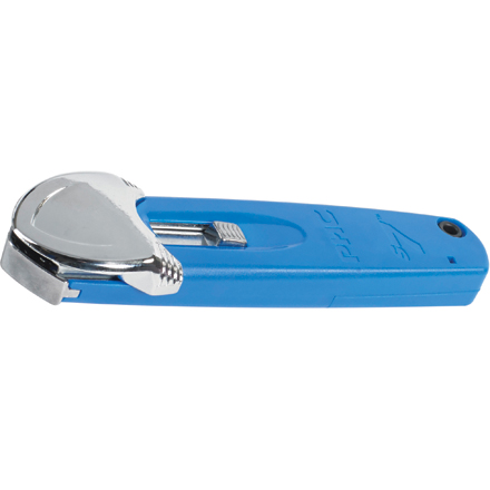 Features a blunt safety tip blade, which prevents puncture wounds and damaged merchandise.
